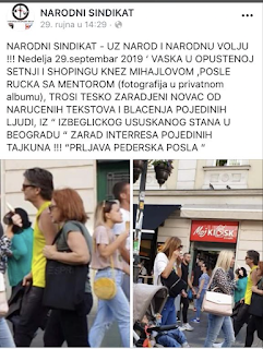 Po nalogu Gorana Osnovca Selaka, koji teško podnosi moje kritike, pratio si me u Beogradu sa tvojom bagrom o čemu svjedoče i fotografije koje si objavio na svom “patriotskom” portalu “Narodni front”, 29.09.2019. godine.