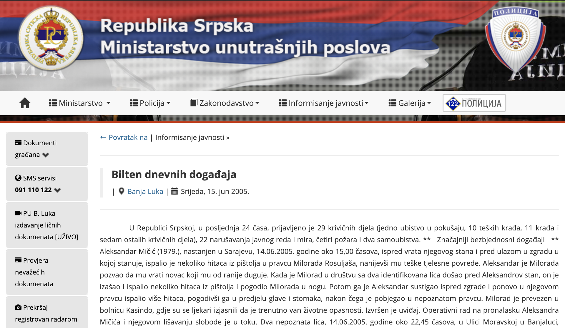 Aleksandar Mičić, zvani Aco Makedonac, je u noći 01/02.01. u neposrednoj blizini noćnog kluba “Perla”, u Istočnom Sarajevu, teško ranio Gorana Sikimu.