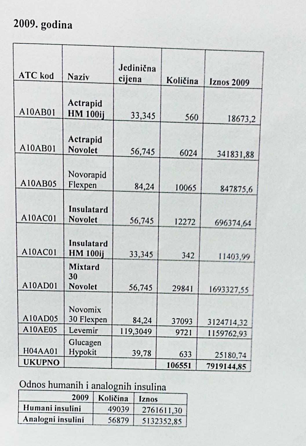 analoga raste, a 2009. Fond nabavlja veći broj skupljeg insulina od onog