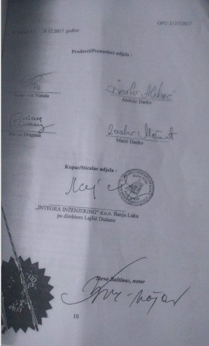 Prema dokumentu (vidi sliku), Nataša Tešanović, još uvijek aktuelna direktorica ATV-a, prodala je 28 posto od 30% udjela koje je posjedovala, dok je Darko Aleksić prodao 9 od deset posto udjela, a Dragana Škrbo i Danko Matić po 7% od osam posto, koliko su posjedovali.
