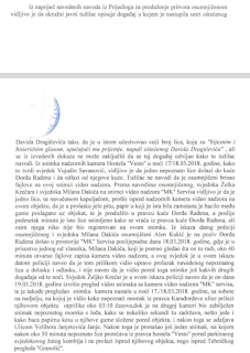 “Iz svega navedenog ovo Vijeće smatra da tužilac nije izvedenim dokazima učinio vjerovatnim činjenicu da je na kamerama video nadzora MK servisa, koja se odnose na noć 18.03., pa tako i na period oko 4 časa te noći bio zabilježen sadržaj snimaka lica koja bi se mogla sumnjičiti zbog krivičnog djela Ubistvo na teret oštećenog Davida Dragičevića te noći, na način na koji je to opisao tužilac, niti prolaska vozila kojim su se ta lica eventualno služila”, navodi se u Rješenju o oslobađanju Kukića pritvora.