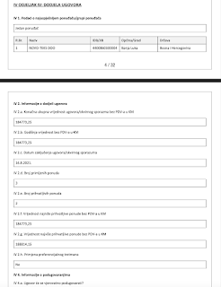 Sa “Novoteksom” je ugovor potpisan 16.08.2021. godine; razbijen je na deset lotova, napisan na 32 strane, a ukupna vrijednost iznosi 744.527 KM.