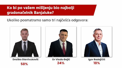 Od njih trojice, Stanivuković je, prema Metrics-u, najjači sa čak 58%; Crta je “dobacio” do 24%, a davno otpisani Radojičić do 18%.